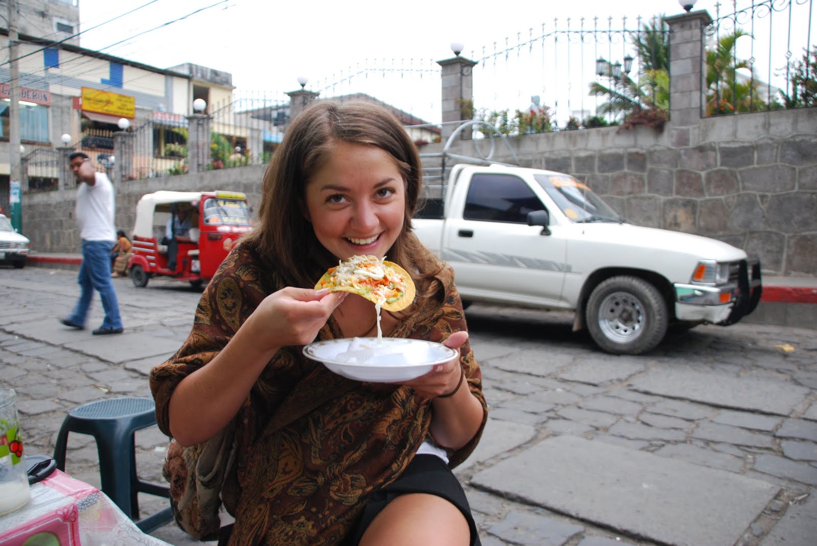 Eating a so called tostada with guacamole & chicken for less than 50 cents.