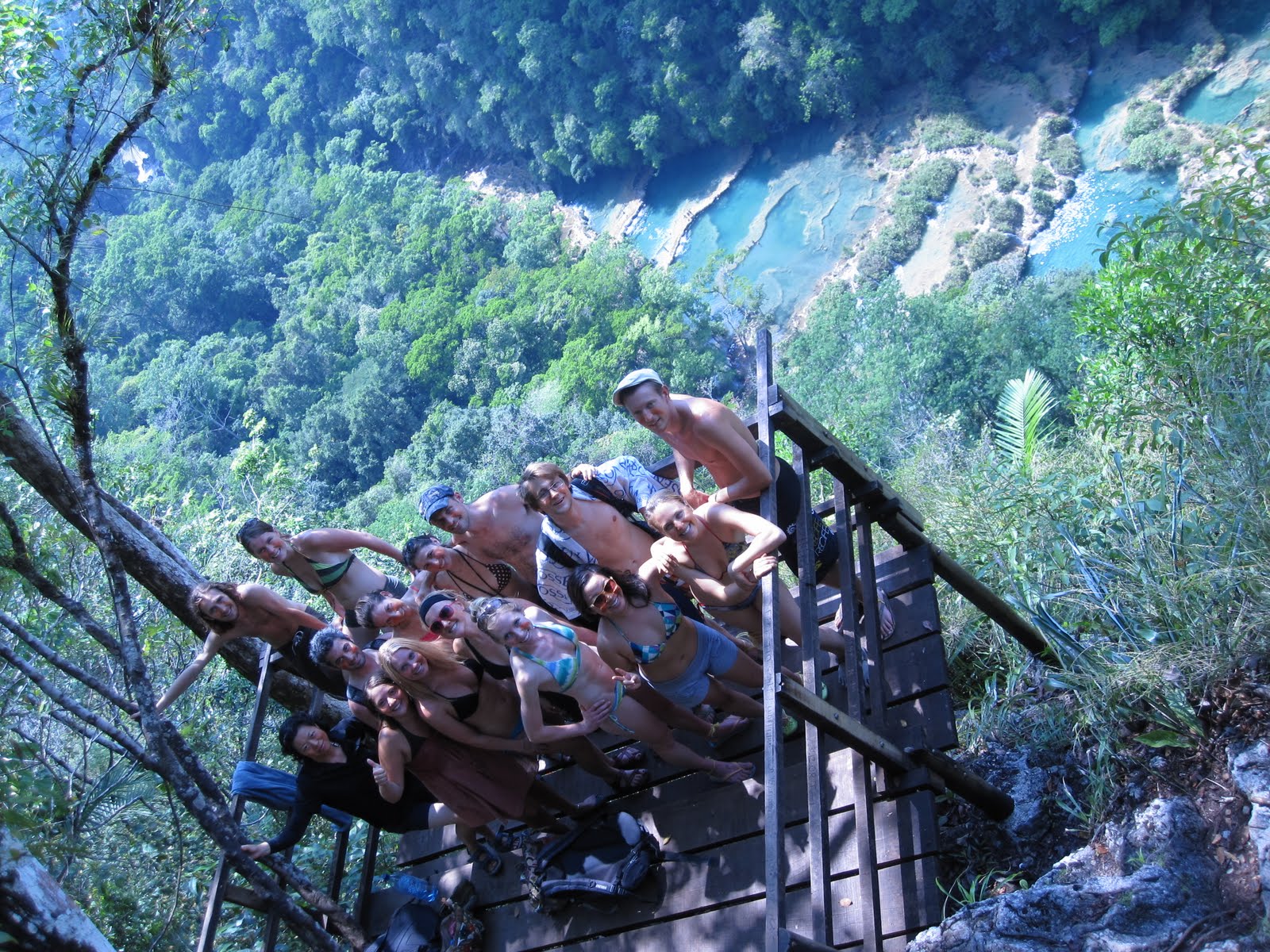 Yesterday we went on a fullday tour to Semuc Champey. (Not to be confused with smoked champagne). The tour started with a voluntary jump into the river from a swing. Of course I managed to land on my back which is still sore. After that we entered the Semuc Champey caves which turned out to be my favorite part of the tour. We swam, climbed, jumped and waded through the caves with nothing but a candle each. It was unlike everything I've ever done before. Also saw a couple of bats in there. As we entered the caves one guy started exploring right away, he slowly put his candle up a hole in the "roof" of the cave and two bats flew out and nearly made that poor guy shit his pants. Fun times. I obviously wanted to make reference jokes to Ace Ventura constantly but no one understood and it made me miss my little brother. "Guano... Collect the whole set!"