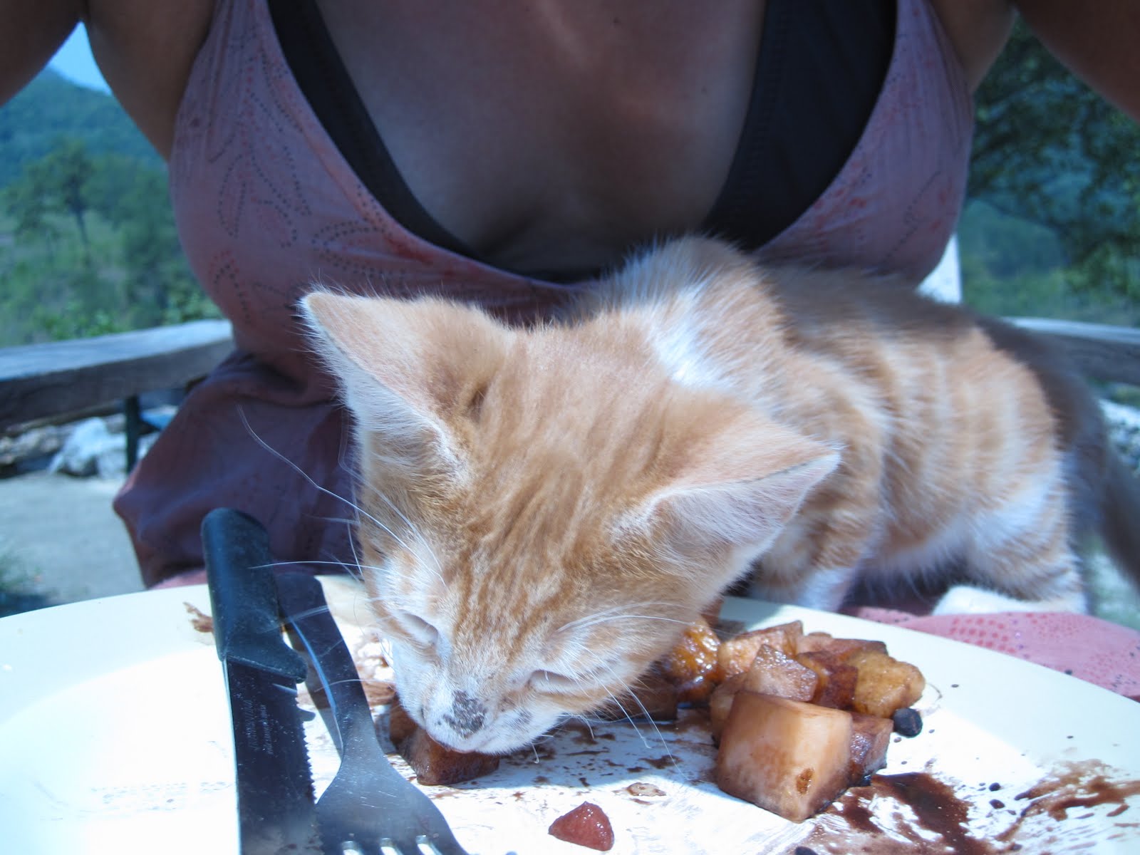 Little hostel kittie eating papaya. (I WANT TO STEAL YOU!)